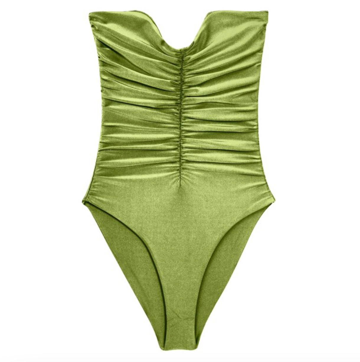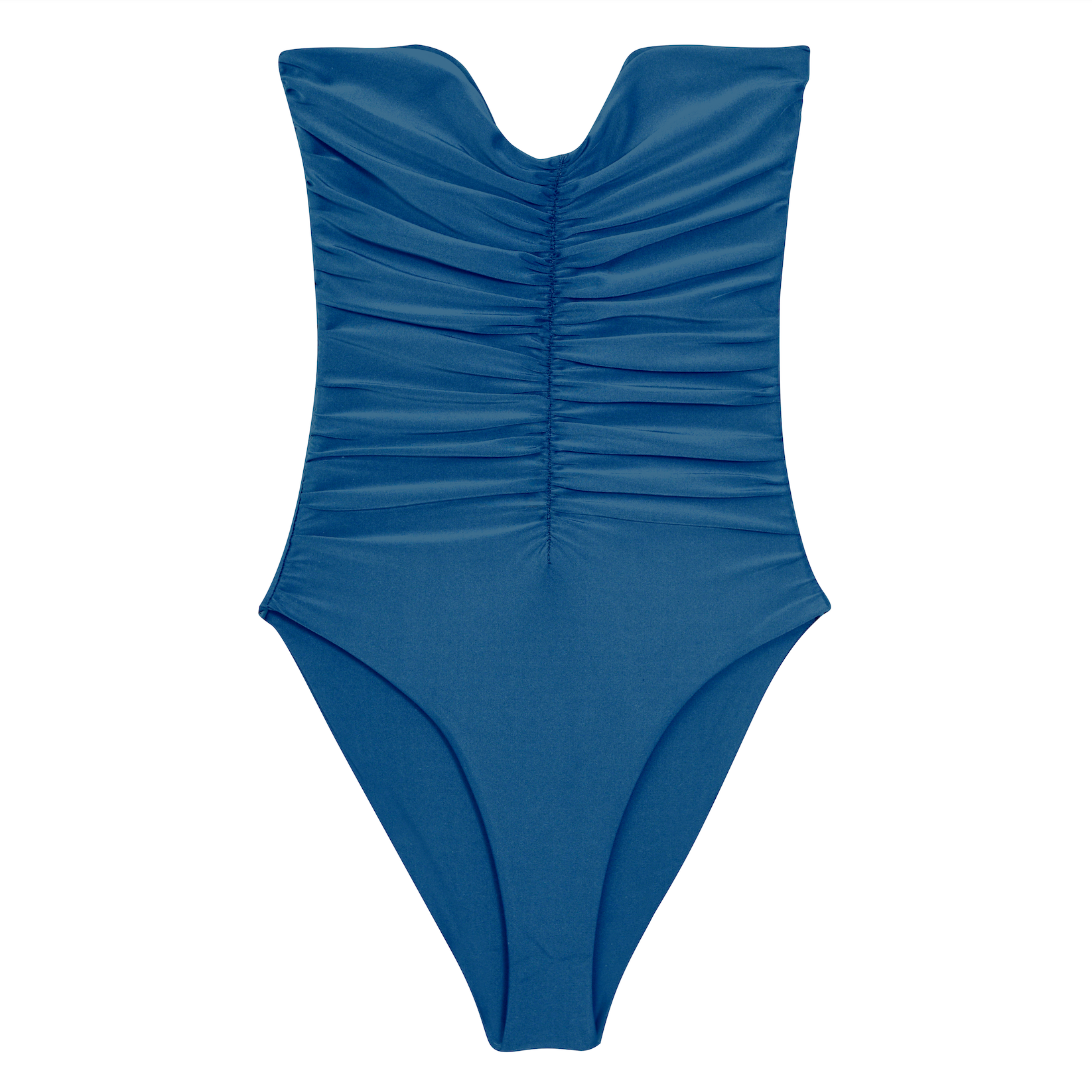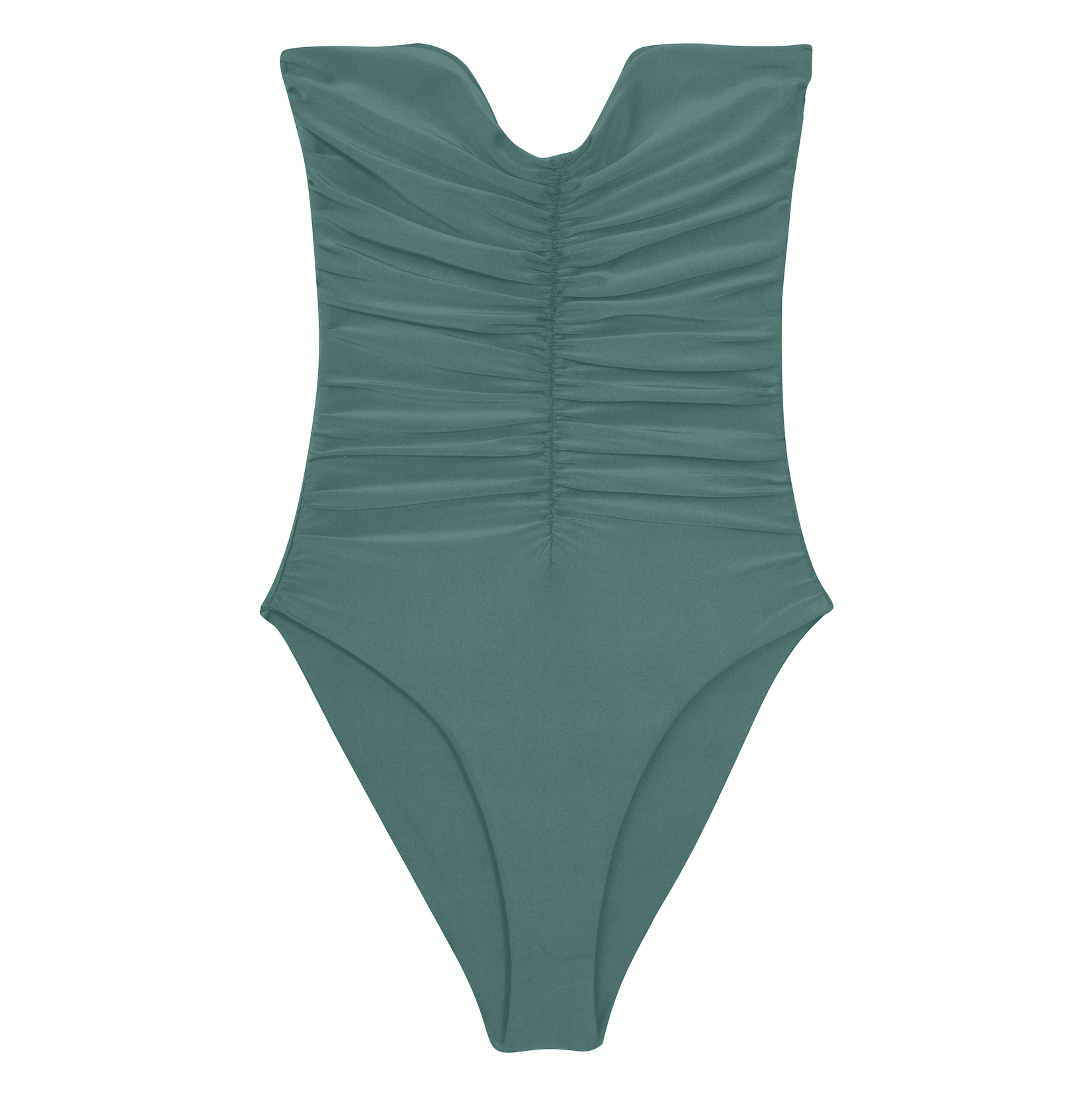 Strapless One Piece with Ruched Center and Moderate Coverage