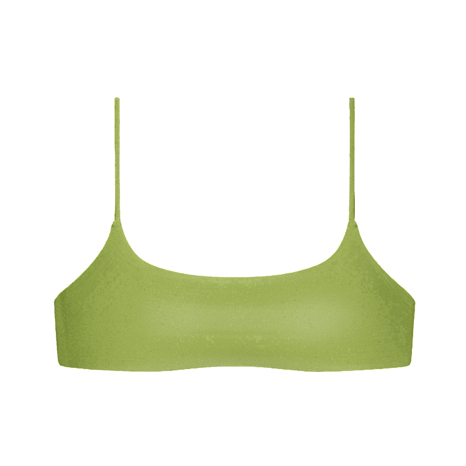 The Muse Scoop Bikini Top is a classic staple bikini top featuring slim straps and minimal back coverage.