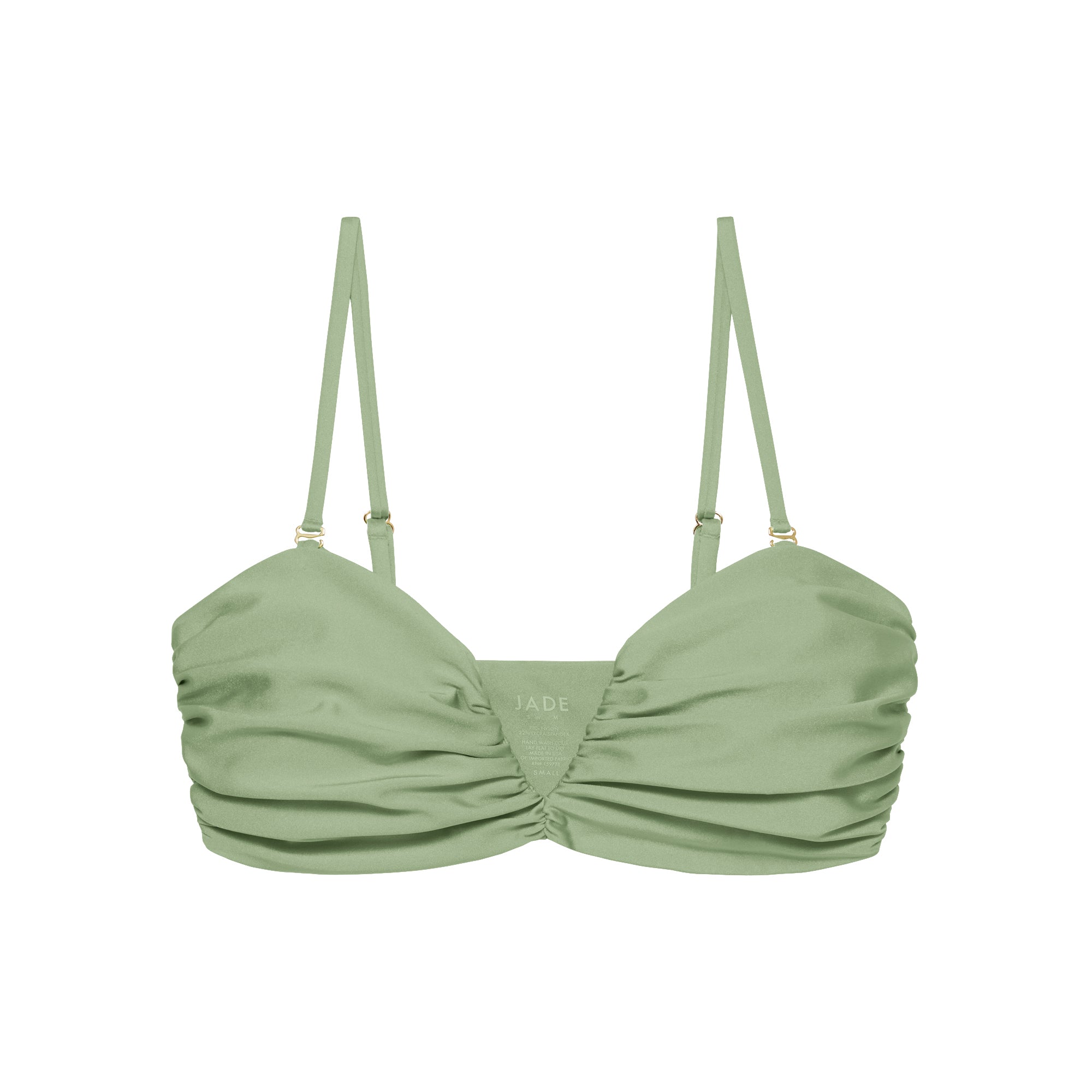 The Calla Top is an underwire, deep-V, ruched bikini top. Featuring an adjustable back clasp and removable straps